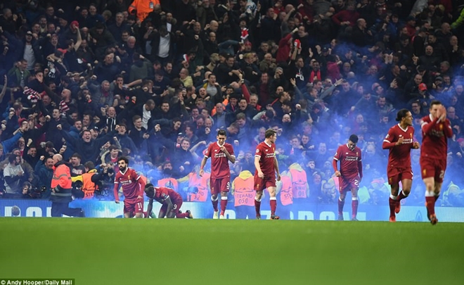 Trước đó khán đài của sân Etihad cũng bị nhuộm khói bởi các CĐV đội khách sau tình huống Mohamed Salah ghi bàn gỡ hòa. Chắc chắn cả hai đội bóng sẽ bị ban tổ chức "nhắc nhở" vì hành động quá khích của người hâm mộ.
