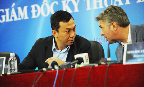 | PCT chuyên môn VFF Trần Quốc Tuấn (trái) cần chỉ ra một phong cách thi đấu xuyên suốt của các Đội tuyển Việt Nam. |