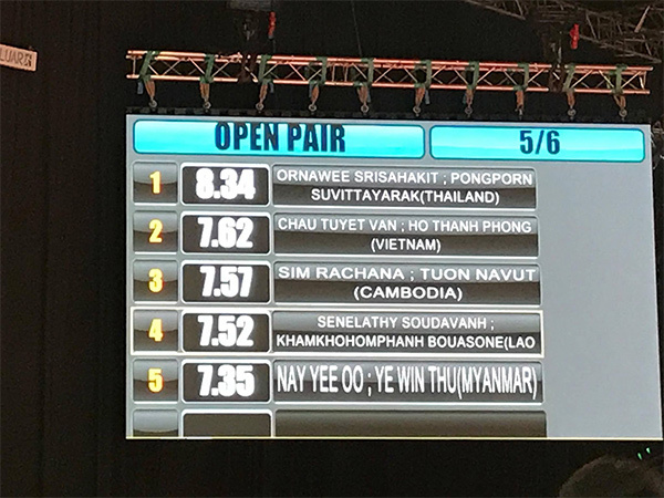 Việt Nam hiện xếp thứ hai nội dung quyền biểu diễn đôi nam nữ, nhưng vẫn còn Malaysia chưa thi đấu.