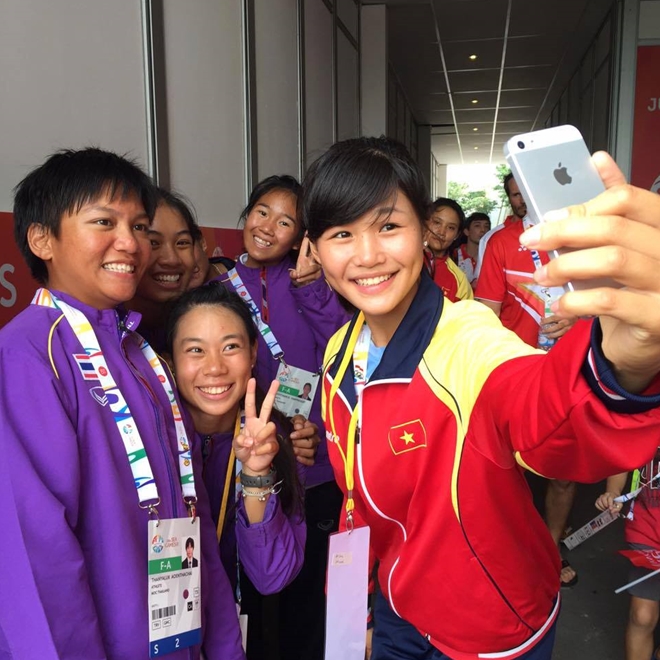 Thi đấu vẫn thi đấu nhưng sở thích chụp ảnh selflife thì không thể bỏ. Ảnh: SEAGames2015