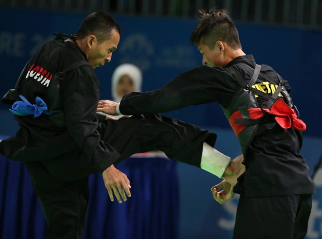 18h33': Pencak Silat: Nguyễn Văn Tú đã nhận thất bại 0-5 trước đối thủ Purnomo Sapto của Indonesia ở tứ kết hạng cân 60-65kg của nam.