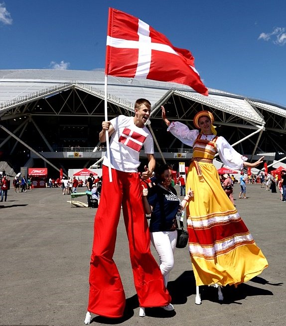 | CĐV hai đội Australia và Đan Mạch phía ngoài SVĐ Samara Arena trước giờ bóng lăn. |