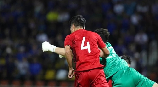 20': Thitiphan bay người cắt mặt rất nhanh, thủ môn Văn Lâm không kiểm soát được nhưng may cho ĐT Việt Nam là bóng bay ngang trước khung thành rồi ra ngoài.