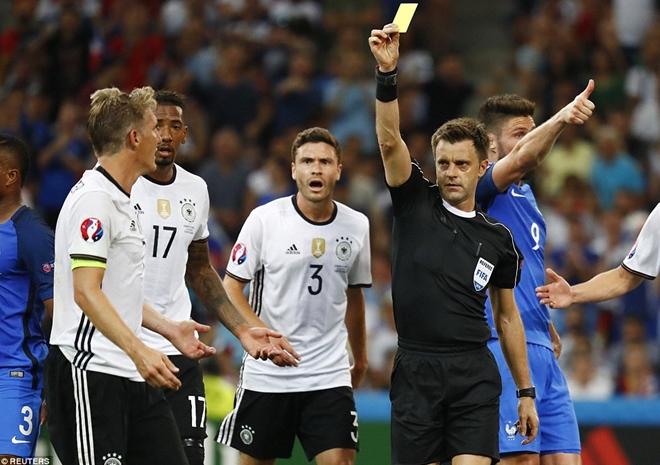 | Trọng tài Nicola Rizzoli dường như hơi quá nặng tay với Đức. Ảnh: Reuters. |