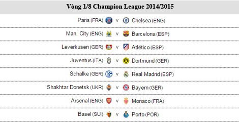 Lễ bốc thăm các cặp đấu vòng 1/8 Champion League 2014/2015