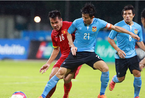 Phút 48: Mạc Hồng Quân vừa ngã trong vòng cấm nhưng không có quả phạt đền nào cho Việt Nam.