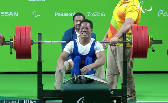 Sau đó lực sỹ Qatar thất bại. Việt Nam có huy chương vàng đầu tiên tại Paralympic Rio 2016 đồng thời phá kỷ lục thế giới và Paralympic.