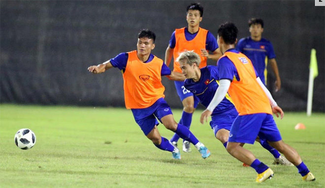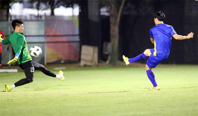 Trong phần tập đá đối kháng, Quang Hải và Xuân Trường được HLV Park Hang-seo thay nhau cho làm "cầu thủ trung tâm". Họ quản lý khu vực giữa sân và đá cho cả hai đội.
