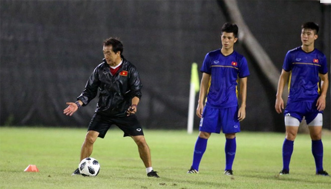 Trong buổi tập tối 21/8, ông Lee dành phần lớn thời gian điều chỉnh hàng thủ. Các hậu vệ như Xuân Mạnh, Đình Trọng, Duy Mạnh, Tiến Dũng, Văn Lợi được chỉ dạy chi tiết từ cách di chuyển hàng ngang, gọi nhau hỗ trợ, chia người lên theo kèm...