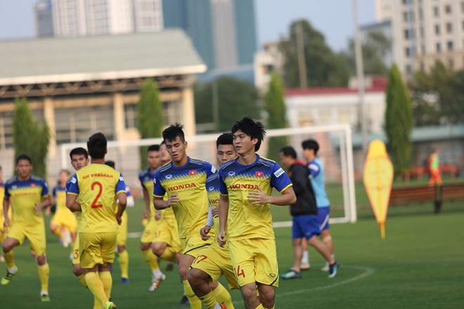 | Nhóm cầu thủ Hà Nội hôm nay mới lên tuyển bởi chiều hôm qua máy bay chở họ mới hạ cánh xuống Nội Bài. Trong khi đó 2 cầu thủ đang thi đấu ở châu Âu là Công Phượng và Văn Hậu sẽ trở về vào ngày mai (7-10) |