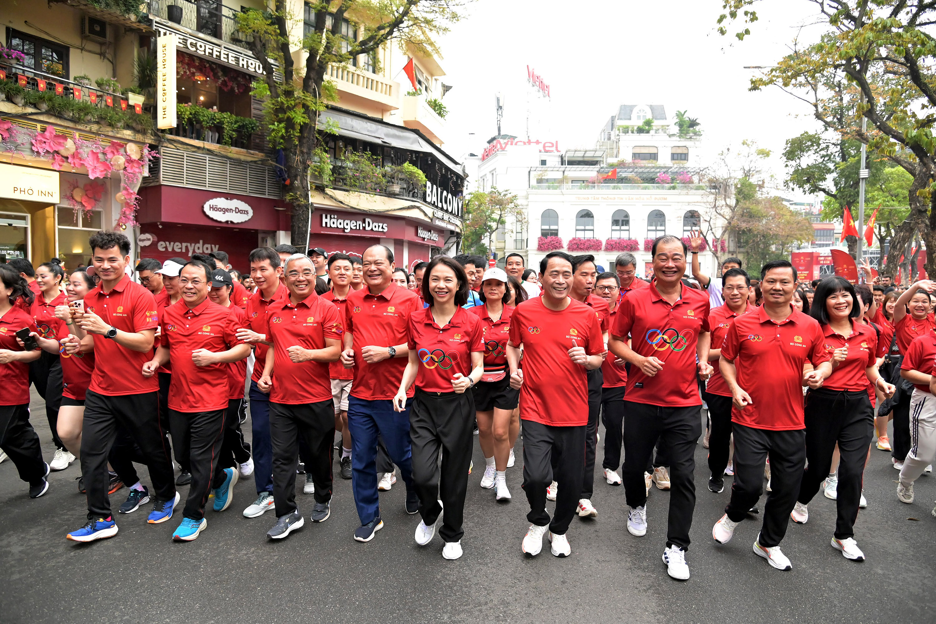 Biển người phủ kín bờ hồ Hoàn Kiếm hưởng ứng Ngày chạy Olympic 2026
