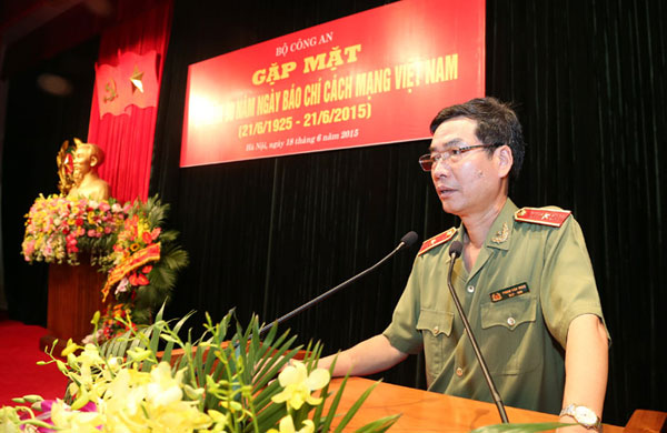 Thay mặt Hội Nhà báo Việt Nam và những người làm báo trong cả nước, tôi trân trọng cảm ơn ý kiến đánh giá rất tốt đẹp của đồng chí Đại tướng Trần Đại Quang, Bộ trưởng Bộ Công an với báo chí cả nước nhân kỷ niệm 90 năm Ngày Báo chí cách mạng Việt Nam. Tự hào được Chủ tịch Hồ Chí Minh sáng lập, rèn luyện, dìu dắt, luôn đặt dưới sự lãnh đạo của Đảng, sự quản lý của Nhà nước, đội ngũ những người làm báo cách mạng luôn gắn bó với sự nghiệp cách mạng của Đảng, của nhân dân và luôn nhận được sự phối hợp, lãnh đạo, chỉ đạo, dìu dắt, đùm bọc của nhân dân, trong đó có lực lượng CAND. Những người làm báo sẽ cố gắng làm tốt hơn vai trò của mình trên mặt trận văn hóa tư tưởng... 3. Thiếu tướng Phạm Văn Miên, Tổng Biên tập Báo Công an nhân dân: