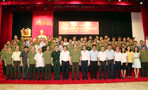 | Đại tướng Trần Đại Quang, Ủy viên Bộ Chính trị, Bộ trưởng Bộ Công an với các đại biểu dự buổi gặp mặt. |