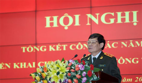 | Đại tướng Trần Đại Quang, Ủy viên Bộ Chính trị, Bộ trưởng Bộ Công an phát biểu chỉ đạo tại hội nghị. |