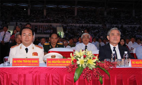 | Đại tướng Trần Đại Quang, Ủy viên Bộ Chính trị, Bộ trưởng Bộ Công an cùng các đồng chí lãnh đạo dự lễ kỷ niệm. |