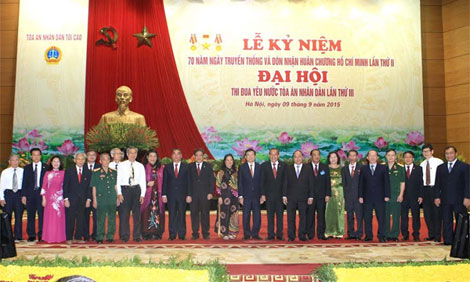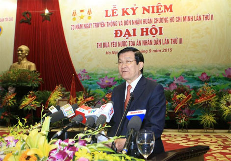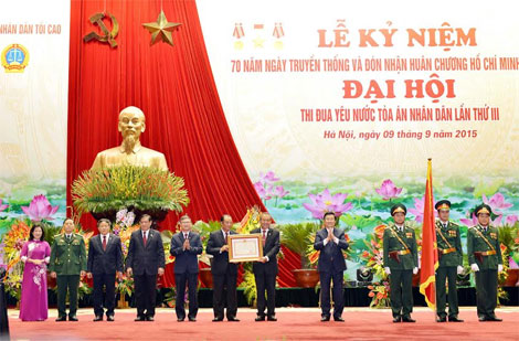 Sáng 9/9, tại Hà Nội, TAND tối cao đã tổ chức kỷ niệm 70 năm ngày truyền thống TAND (13/9/1945- 13/9/2015) và Đại hội thi đua yêu nước TAND lần thứ III. Chủ tịch nước Trương Tấn Sang, Trưởng Ban Chỉ đạo cải cách tư pháp Trung ương đã tới dự.