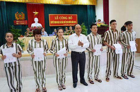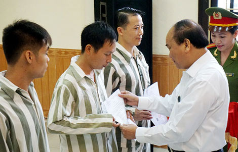 | Phó Thủ tướng Nguyễn Xuân Phúc trao quyết định đặc xá cho các phạm nhân tại Trại giam Thanh Xuân.. |