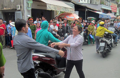 | Thân nhân chờ đón trước cửa Trại giam Chí Hòa. |