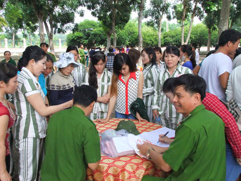 | Làm thủ tục cho các phạm nhân chuẩn bị đặc xá. |