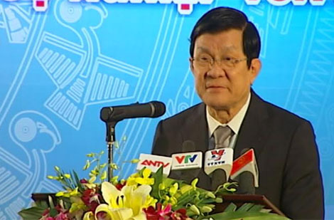 | Chủ tịch nước Trương Tấn Sang phát biểu chỉ đạo hội nghị. |