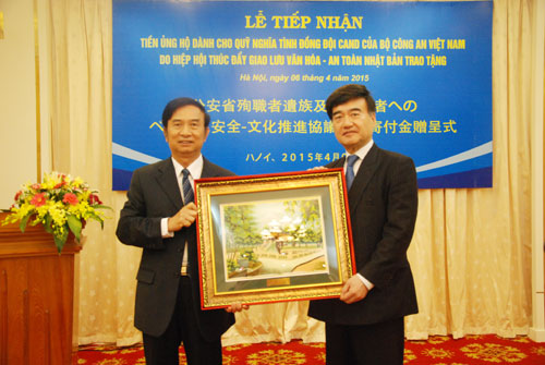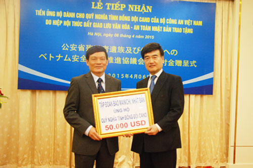 Thứ trưởng Đặng Văn Hiếu dự lễ tiếp nhận 50 ngàn USD của phía Nhật Bản ủng hộ Quỹ 'Nghĩa tình đồng đội CAND'