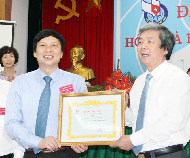 | Ông Hà Minh Huệ, Phó chủ tịch Thường trực Hội Nhà báo Việt Nam trao Bằng khen cho Hội Nhà báo TP Hà Nội |