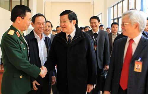 | Chủ tịch nước Trương Tấn Sang với các học viên. Ảnh: TTXVN. |