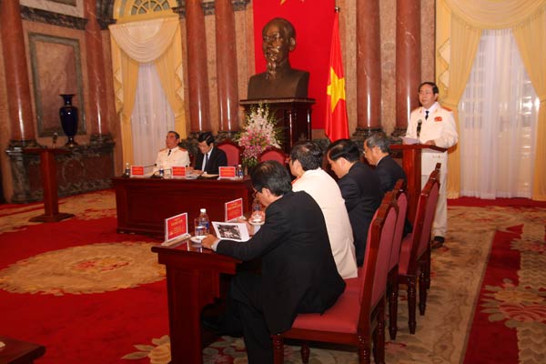 Phát biểu tại buổi gặp mặt, Chủ tịch nước Trương Tấn Sang nhấn mạnh: 70 năm qua, được sự lãnh đạo, giáo dục, rèn luyện của Đảng và Bác Hồ kính yêu, lực lượng Công an nhân dân đã không ngừng lớn mạnh, trưởng thành, gắn bó máu thịt với nhân dân, hoàn thành xuất sắc nhiệm vụ, lập nhiều thành tích và nhiều chiến công oanh liệt. Trong những thành tựu to lớn đó, có sự đóng góp xứng đáng của các thế hệ tướng lĩnh - những sĩ quan chỉ huy cao cấp của lực lượng Công an nhân dân, những người được tôi luyện, trưởng thành từ thực tiễn công tác, chiến đấu, sẵn sàng chiến đấu, hy sinh vì sự nghiệp cách mạng của dân tộc, tô thắm truyền thống vẻ vang của lực lượng Công an nhân dân Việt Nam.