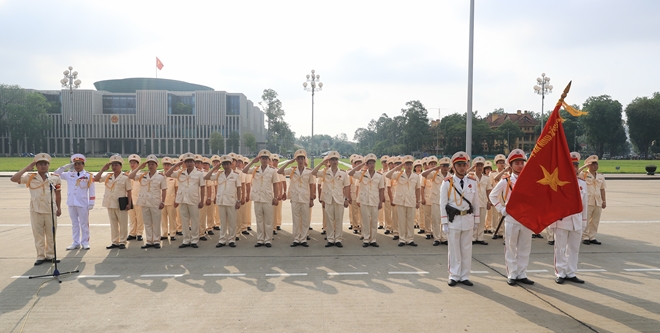 Tập thể cán bộ, chiến sỹ Học viện CSND báo công dâng Bác tại Quảng trường Ba Đình lịch sử.