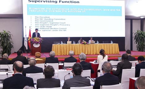 Phát biểu khai mạc, thay mặt cho Văn phòng Quốc hội, Chủ nhiệm Văn phòng Quốc hội Việt Nam Nguyễn Hạnh Phúc nêu rõ: Hiến pháp năm 2013 đã được Quốc hội Việt Nam thông qua, là bản Hiến pháp đánh dấu thời kỳ tiếp tục đẩy mạnh công cuộc đổi mới đất nước, tạo nền tảng pháp lý vững chắc cho sự vận hành toàn bộ đời sống xã hội, tạo ra động lực mạnh mẽ để đẩy mạnh quá trình công nghiệp hóa, hiện đại hóa đất nước và hội nhập quốc tế.