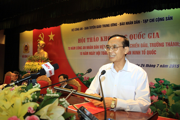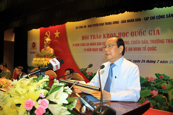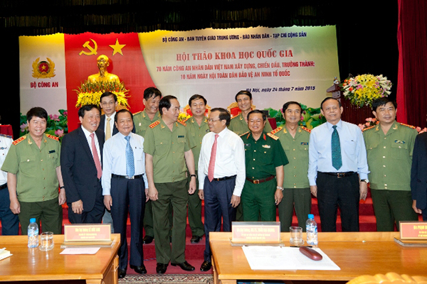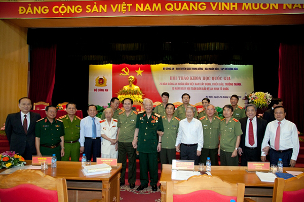Hội thảo do Bộ Công an chủ trì, phối hợp với Ban Tuyên giáo Trung ương, Báo Nhân dân, Tạp chí Cộng sản tổ chức tại Hà Nội ngày 24/7. Nguyên Tổng Bí thư Đỗ Mười gửi thư và lẵng hoa chúc mừng. Tới dự hội thảo quan trọng này có đồng chí Đại tướng Lê Đức Anh, nguyên Ủy viên Bộ Chính trị, nguyên Chủ tịch nước; đồng chí Trần Đức Lương, nguyên Ủy viên Bộ Chính trị, nguyên Chủ tịch nước; đồng chí Phạm Quang Nghị, Ủy viên Bộ Chính trị, Bí thư Thành ủy Hà Nội; đồng chí Lê Thanh Hải, Ủy viên Bộ Chính trị, Bí thư Thành ủy TP Hồ Chí Minh. Đại tướng, GS, TS Trần Đại Quang, Ủy viên Bộ Chính trị, Bí thư Đảng ủy CATW, Bộ trưởng Bộ Công an dự và chủ trì hội thảo.