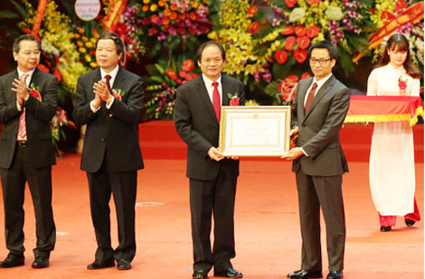 | Thay mặt lãnh đạo Đảng, Nhà nước, Phó Thủ tướngVũ Đức Đam trao Huân chương Lao động hạng Nhất cho Đại học KHXH&NV. Ảnh: VGP. |