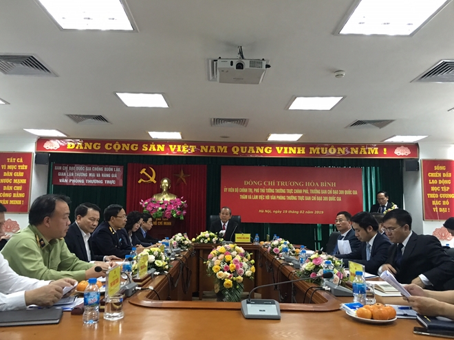 Phát biểu chỉ đạo tại buổi làm việc, Phó Thủ tướng thường trực Trương Hòa Bình biểu dương Văn phòng Thường trực Ban Chỉ đạo 389 quốc gia đã chủ động, tích cực phối hợp với các cơ quan liên quan tham mưu, trình Thủ tướng Chính phủ và Trưởng Ban Chỉ đạo 389 quốc gia ban hành nhiều chương trình, kế hoạch hành động trong công tác chống buôn lậu, gian lận thương mại và hàng giả. Bên cạnh kết quả đạt được, Phó Thủ tướng Trương Hòa Bình yêu cầu Văn phòng Thường trực cần tập trung làm tốt các nhiệm vụ trọng tâm. Trong đó, phải luôn bám sát chức năng, nhiệm vụ được giao, làm tốt công tác tham mưu tổng hợp, giúp việc cho Ban Chỉ đạo 389 quốc gia; thực hiện tốt công tác điều hòa, phối hợp giữa các lực lượng liên ngành để triển khai có hiệu quả chương trình, kế hoạch công tác; Tăng cường phối hợp với các bộ, ngành, địa phương, các lực lượng chức năng để rà soát các quy định của pháp luật, đề xuất xây dựng, hoàn thiện cơ chế chính sách không để các đối tượng lợi dụng khoảng trống, sự chồng chéo của pháp luật để buôn lậu, gian lận thương mại, sản xuất kinh doanh hàng giả, kém chất lượng; Chủ động, tích cực hơn trong việc kiểm tra đôn đốc các cơ quan liên quan trong việc thực hiện ý kiến chỉ đạo của Trưởng Ban, định kỳ hàng tháng thống kê, tổng hợp báo cáo, kịp thời hướng dẫn các cơ quan liên quan trong việc triển khai các chương trình, kế hoạch của Ban Chỉ đạo 389 quốc gia. Đặc biệt, chủ động nắm tình hình, phối hợp chặt chẽ với các lực lượng chức năng, các hiệp hội ngành, nghề, cơ quan thông tấn báo chí để kịp thời phát hiện, xử lý các hành vi buôn lậu, gian lận thương mại, sản xuất kinh doanh hàng giả. Bên cạnh đó, tham mưu ban hành kế hoạch đấu tranh chống các hành vi lợi dụng thương mại điện tử để sản xuất, kinh doanh hàng hóa vi phạm pháp luật.