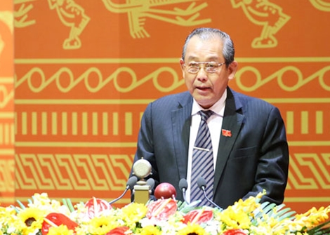 | Đồng chí Trương Hòa Bình, Bí thư Trung ương Đảng, Chánh án Tòa án nhân dân tối cao trình bày tham luận. |