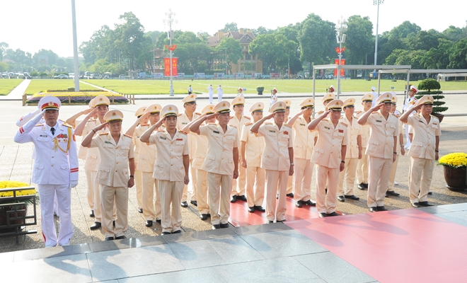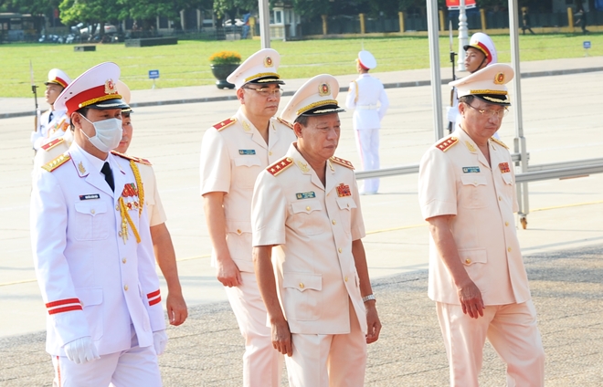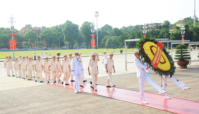 | Đoàn đại biểu Đảng ủy Công an Trung ương, Bộ Công an vào Lăng viếng Chủ tịch Hồ Chí Minh. |