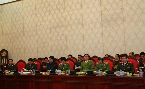 Tại buổi họp, Thiếu tướng Đặng Thái Giáp, Cục trưởng Cục Công tác chính trị Bộ Công an báo cáo tóm tắt kết quả phong trào thi đua “Vì an ninh Tổ quốc” năm 2014 trong CAND, nêu rõ: Với thành tích xuất sắc đạt được trong năm 2014, lực lượng CAND đã được Đảng, Nhà nước và lãnh đạo Bộ Công an khen thưởng như: 1 tập thể được tặng Huân chương Hồ Chí Minh; 10 cá nhân được tặng Huân chương Độc lập; 9 tập thể, 12 cá nhân được tặng Huân chương Quân công; 80 tập thể, 99 cá nhân được tặng Huân chương Chiến công; 212 tập thể, 2.777 cá nhân được tặng Huân chương Bảo vệ Tổ quốc; 335 cá nhân được tặng danh hiệu Chiến sỹ thi đua toàn lực lượng CAND; 4 cá nhân được tặng danh hiệu Chiến sỹ thi đua toàn quốc... Tổng kết phong trào thi đua “Vì an ninh Tổ quốc” năm 2014, 23 tập thể được Bộ Công an đề nghị Chính phủ tặng Cờ Thi đua xuất sắc; 112 tập thể được tặng Cờ thi đua Bộ Công an...