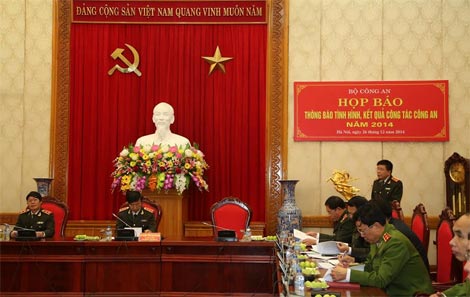 Báo cáo tóm tắt tình hình, công tác kết quả công tác Công an năm 2014, Trung tướng Nguyễn Danh Cộng, Chánh Văn phòng, Người phát ngôn Bộ Công an nêu rõ: Năm 2014,dưới sự lãnh đạo, chỉ đạo sát sao của Trung ương Đảng, Quốc hội, Chính phủ mà trực tiếp là Bộ Chính trị, Ban Bí thư, Thủ tướng Chính phủ, lực lượng CAND đã nỗ lực phấn đấu, phát huy vai trò nòng cốt, thực hiện thắng lợi nhiệm vụ được giao, giữ vững an ninh chính trị, trật tự, an toàn xã hội (TTATXH), góp phần quan trọng bảo vệ chủ quyền, thống nhất, toàn vẹn lãnh thổ, ổn định chính trị, phục vụ có hiệu quả nhiệm vụ phát triển kinh tế-xã hội và đối ngoại của đất nước.