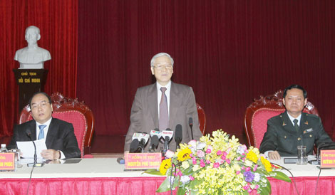 | Tổng Bí thư Nguyễn Phú Trọng phát biểu tại buổi làm việc. Ảnh: TTXVN. |