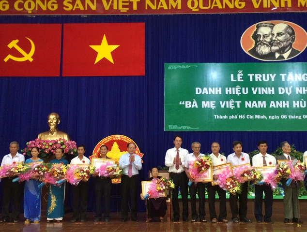 Ngày 6-6, Tỉnh ủy, HĐND, UBND, UBMTTQ Việt Nam TP Hồ Chí Minh đã long trọng tổ chức Lễ truy tặng danh hiệu vinh dự Nhà nước Bà mẹ Việt Nam Anh hùng đợt 32 cho 38 Mẹ thuộc 9 quận, huyện gồm: Quận Tân Bình, quận Tân Phú, quận 6, quận 3, quận 7, quận 12, huyện Củ Chi, huyện Hóc Môn và huyện Bình Chánh.