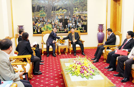 | Thứ trưởng Bùi Văn Thành; Giám đốc cao cấp Tập đoàn Toyota của Nhật Bản Konishi tại buổi tiếp. |