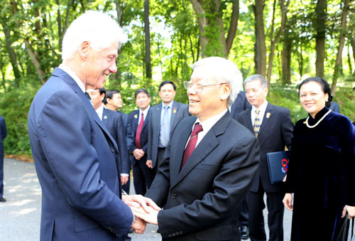 Tổng Bí thư Nguyễn Phú Trọng chân thành cảm ơn tình cảm và những đóng góp quan trọng của ông Clinton và phu nhân đối với sự phát triển quan hệ mọi mặt giữa Việt Nam và Hoa Kỳ trong 20 năm qua; bày tỏ luôn coi ngài và phu nhân Clinton là những người bạn lớn của nhân dân Việt Nam.