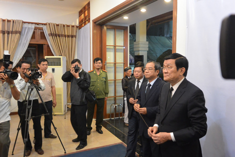 | Chủ tịch nước Trương Tấn Sang đến viếng và tiễn biệt ông Bá Thanh. |