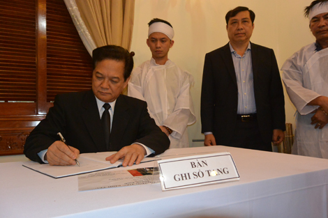 | Thủ tướng Nguyễn Tấn Dũng ghi sổ tang chia buồn cùng gia quyến ông Nguyễn Bá Thanh. |