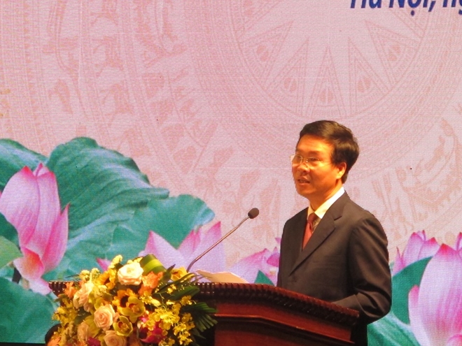 | Đồng chí Võ Văn Thưởng, Ủy viên Bộ Chính trị, Trưởng Ban Tuyên giáo Trung ương phát biểu tại Đại hội |