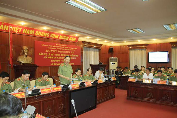 Phát biểu chỉ đạo buổi làm việc, Thứ trưởng Tô Lâm nhấn mạnh: Lễ mít tinh, diễu binh, diễu hành kỷ niệm 70 năm Quốc khánh 2-9 là sự kiện chính trị lớn của Đảng, Nhà nước, đặt ra những yêu cầu nhiệm vụ đặc biệt quan trọng trong công tác đảm bảo ANTT, đòi hỏi các Tổng cục, đơn vị ở Bộ, Công an TP Hà Nội cùng Công an các đơn vị, địa phương theo chức năng nhiệm vụ đã được phân công bảo vệ buổi Lễ chủ động rà soát những công việc còn lại; phối hợp chặt chẽ với lực lượng Quân đội, các bộ, ban, ngành liên quan hoàn thiện các kế hoạch công tác, phương án bảo vệ; tăng cường kiểm tra công tác phòng cháy, chữa cháy; đảm bảo tốt trật tự an toàn giao thông, trật tự công cộng; chuẩn bị đầy đủ phương tiện kỹ thuật, cơ sở vật chất; đảm bảo thông tin liên lạc thông suốt đáp ứng yêu cầu chỉ huy, chỉ đạo; tăng cường lực lượng, phương tiện ứng trực sẵn sàng nhận nhiệm vụ khi có yêu cầu; tổ chức chặt chẽ, đồng bộ công tác bảo vệ các khu vực, đặc biệt là khu vực Quảng trường Ba Đình; dự kiến các tình huống có thể xảy ra và có giải pháp cụ thể xử lý tình huống. Bên cạnh đó cần tạo điều kiện thuận lợi cho các hoạt động sinh hoạt, đi lại, vui chơi giải trí của người dân; giữ vững an ninh trật tự trên các địa bàn nhất là tại các địa bàn trọng điểm, chiến lược, các thành phố lớn; không để xảy ra các tình huống bị động bất ngờ...