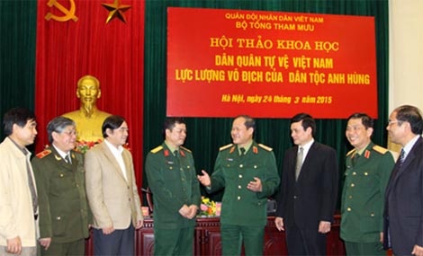 Nhân kỷ niệm 80 năm Ngày Truyền thống lực lượng Dân quân tự vệ Việt Nam (28/3/1935 - 28/3/2015), ngày 24/3, tại Hà Nội, Bộ Tổng Tham mưu Quân đội nhân dân Việt Nam tổ chức Hội thảo khoa học với chủ đề “Dân quân tự vệ Việt Nam - Lực lượng vô địch của dân tộc anh hùng”.