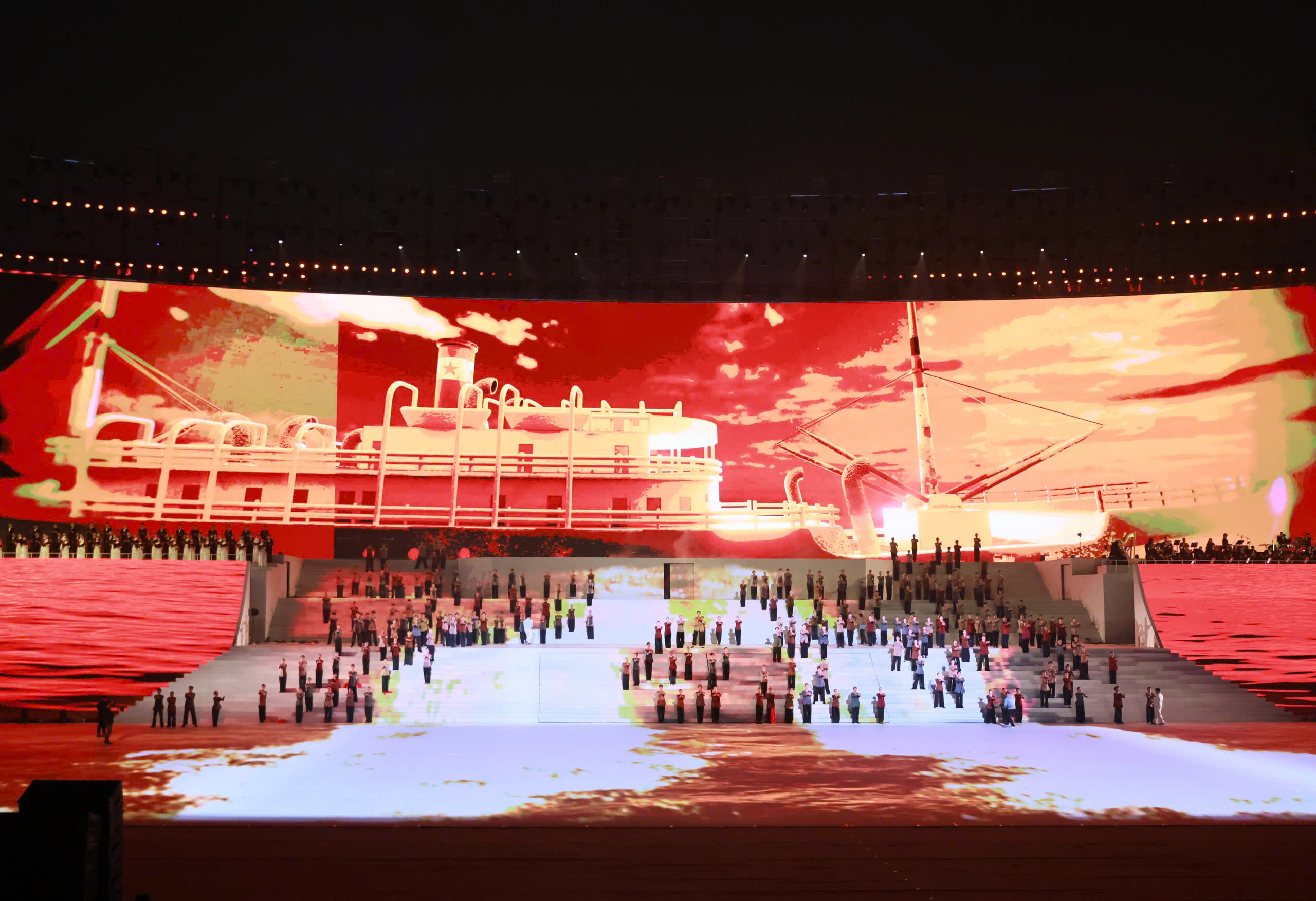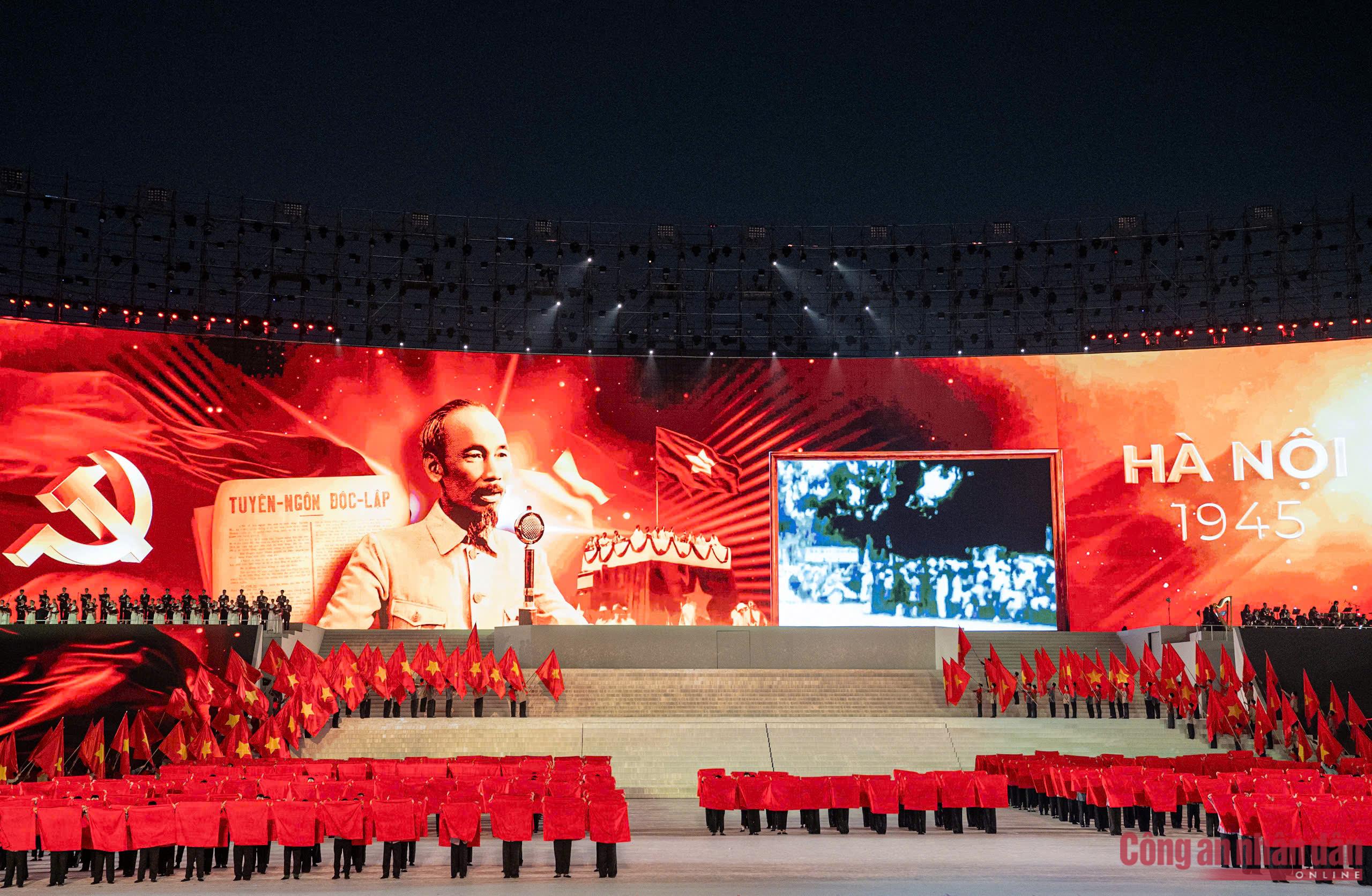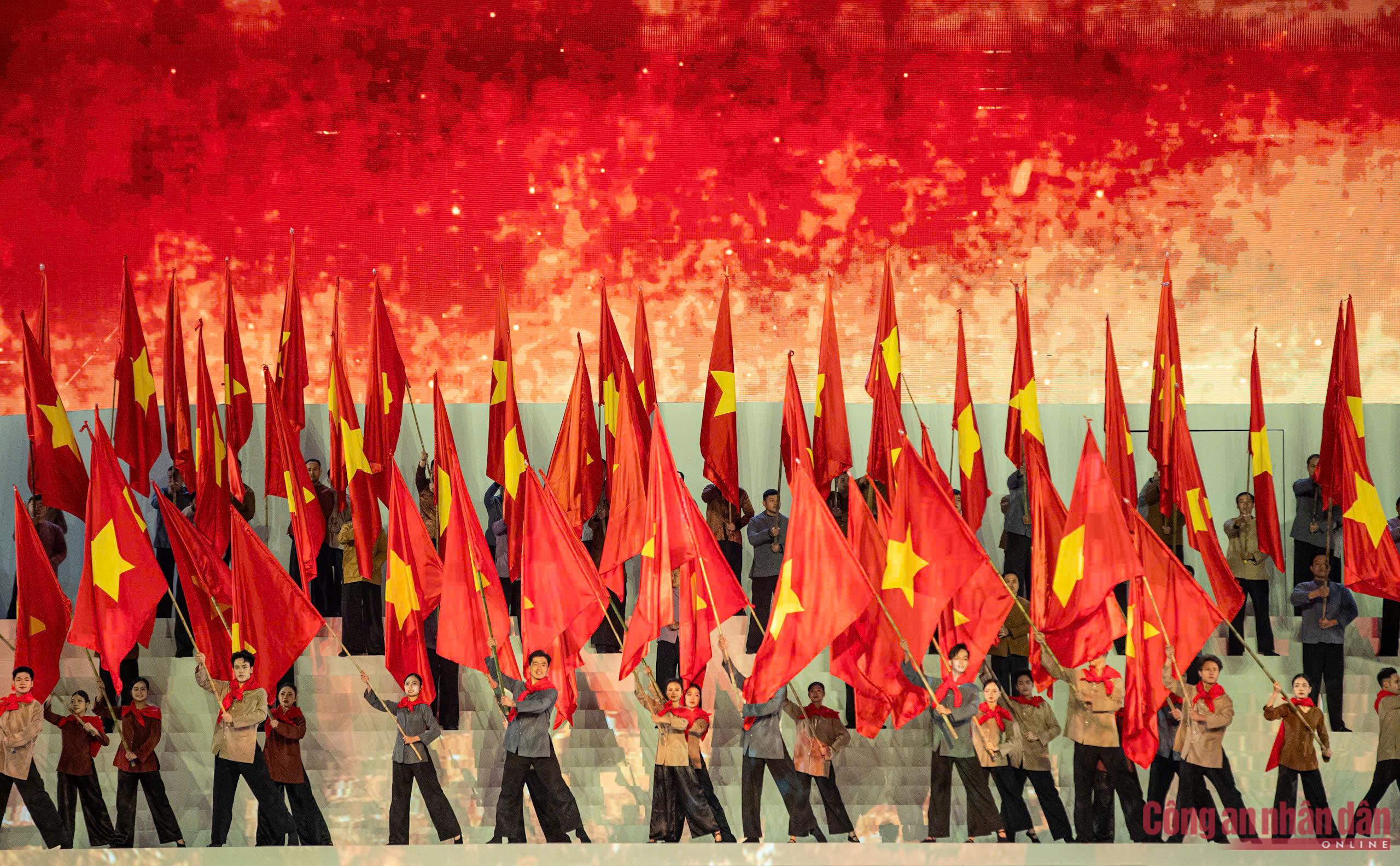 Ngay sau phát biểu chào mừng của Bí thư Thành ủy Hà Nội, không gian sân vận động quốc gia như lắng lại, những giai điệu đầu tiên vang lên. Những bài hát như lời của hồn thiêng sông núi, kết tinh từ chiều sâu lịch sử, truyền thống cách mạng và khát vọng trường tồn của dân tộc. Âm nhạc không chỉ cất lên bằng thanh âm, mà như chạm vào ký ức, đánh thức niềm tự hào, trách nhiệm và niềm tin của mỗi người tham dự.