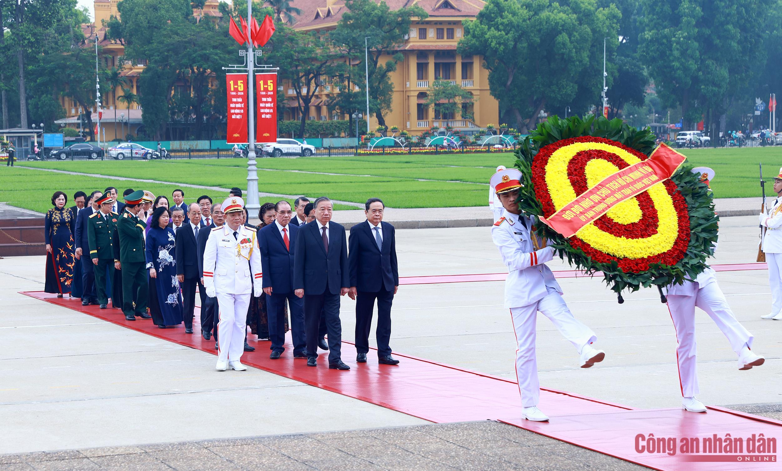 Kỷ niệm 51 năm Ngày Giải phóng miền Nam, thống nhất đất nước (30/4/1975 – 30/4/2026), sáng 28/4, Đoàn đại biểu gồm các đồng chí lãnh đạo, nguyên lãnh đạo Đảng, Nhà nước cùng lãnh đạo các bộ, ngành Trung ương đến đặt vòng hoa, vào Lăng viếng Chủ tịch Hồ Chí Minh và dâng hương tưởng niệm các Anh hùng liệt sĩ tại Đài Tưởng niệm các Anh hùng Liệt sĩ.
