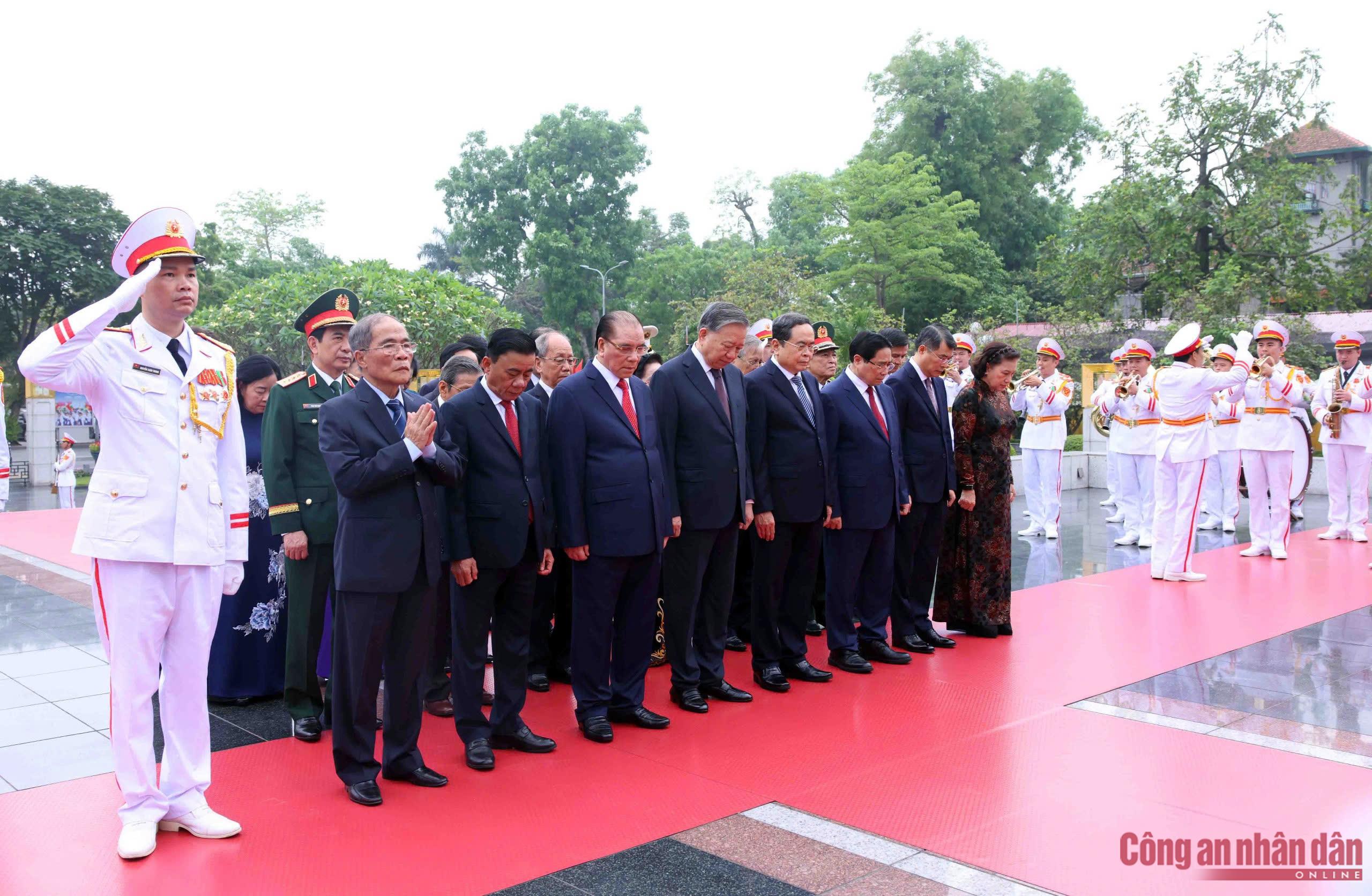 Với lòng biết ơn vô hạn, các đồng chí lãnh đạo, nguyên lãnh đạo Đảng, Nhà nước đã thành kính tưởng nhớ Chủ tịch Hồ Chí Minh, vị lãnh tụ thiên tài, Anh hùng giải phóng dân tộc.
