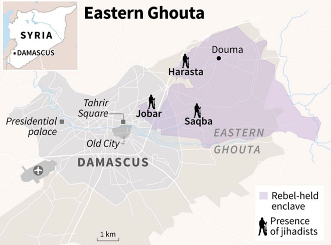 | Bản đồ khu vực Đông Ghouta. Đồ họa: Internet |